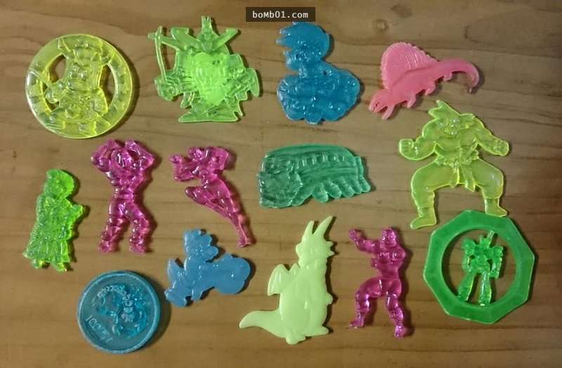 ▼6. 鬥片:塑膠材質的機器人、七龍珠等等。每個男孩的鉛筆盒中都有一些,下課後與同學比賽,分出輸贏。