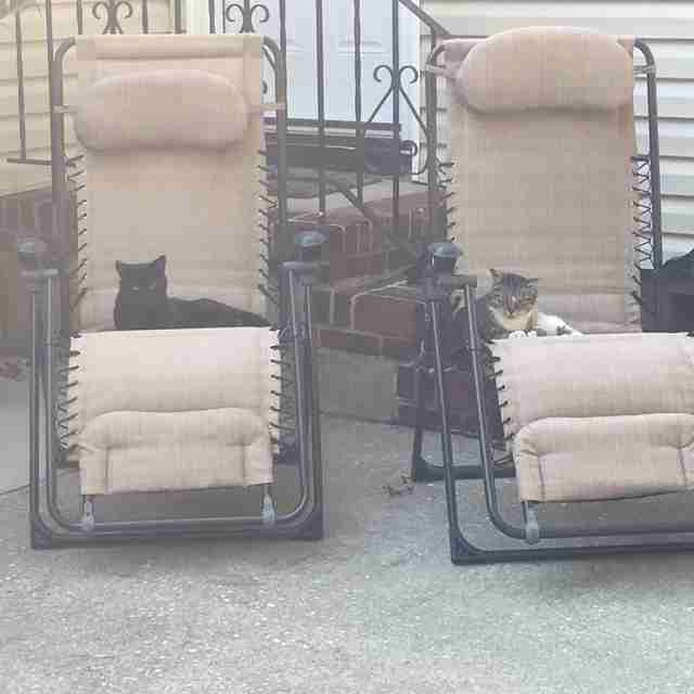 ▼自由出入後院的Mama還會帶著2隻黑貓夥伴Inky和Finky,一起悠閒在卡桑諾家的後院裡面悠閒晃蕩,卡桑諾也無意收編這些浪浪,但是卻很樂意為牠們提供一個舒適自在可以自由進出的環境,而浪浪也都認得他們,會自由的出現在這戶房子的草坪上、庭院椅上,又或是到吃飯時間時來求餵食。