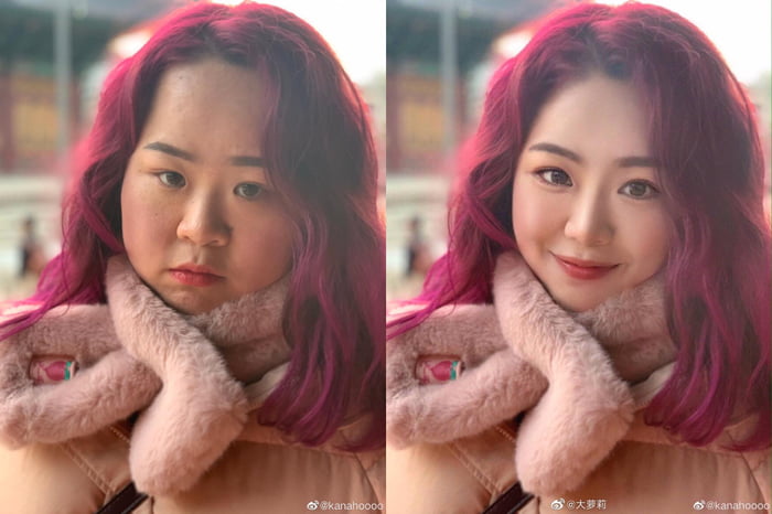 ▼原本長相普通的女孩,修圖後瞬間變女神。