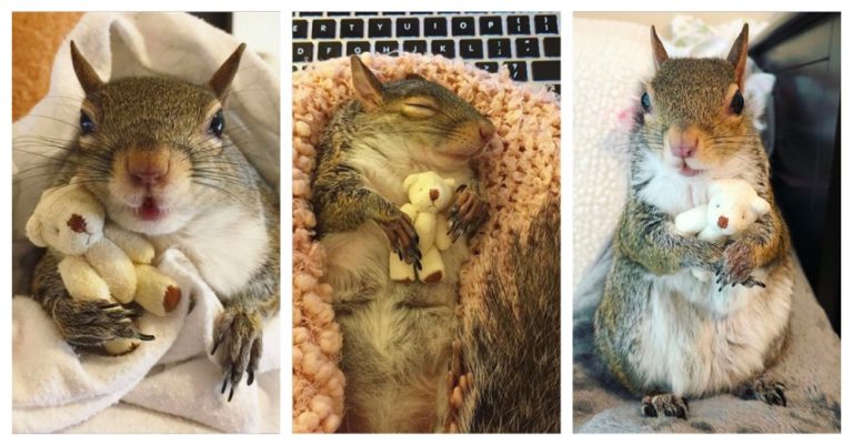 颶風後被把拔馬麻撿回家 小松鼠「安全感不夠」超會撒嬌:要抱小泰迪才能睡♡