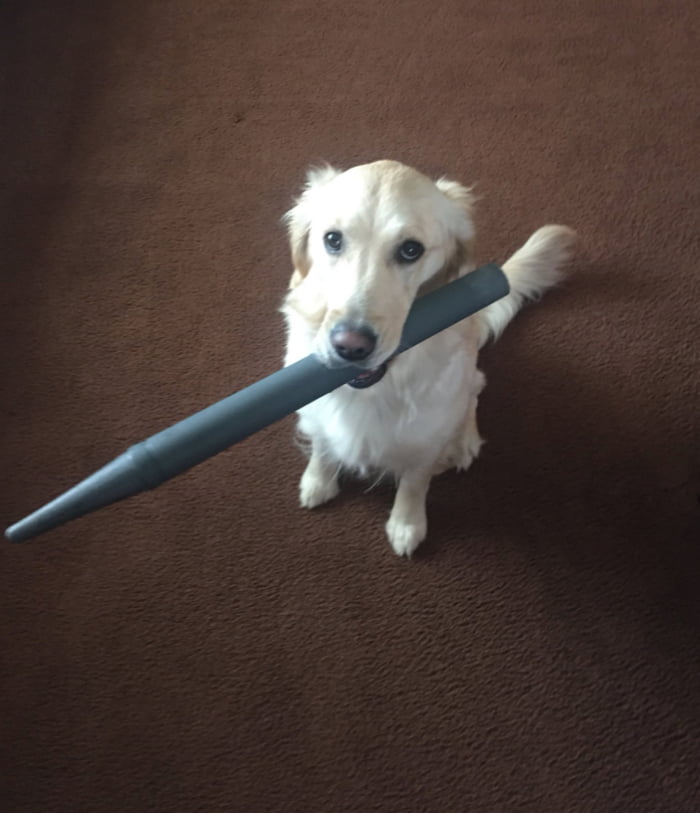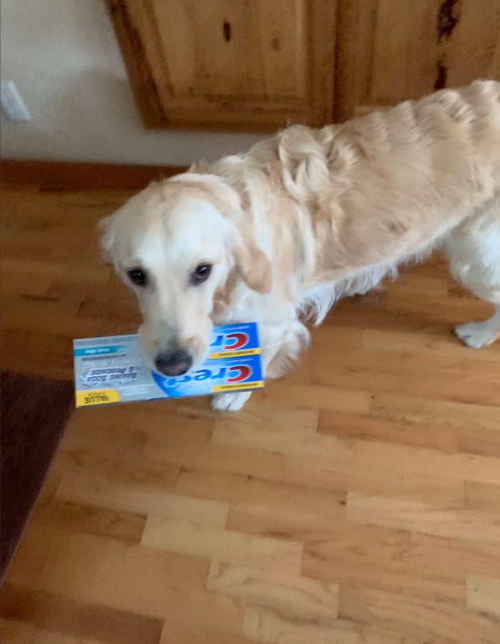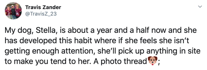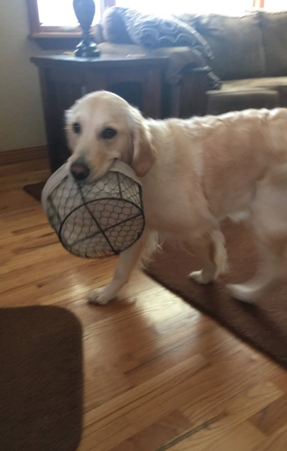 ▼主人Travis Zander說:「我家的狗狗Stella快要滿1歲半了,牠已經養成了習慣,如果得不到關注,牠就會用嘴巴叼起視線裡的所有東西,來吸引你的注意。」