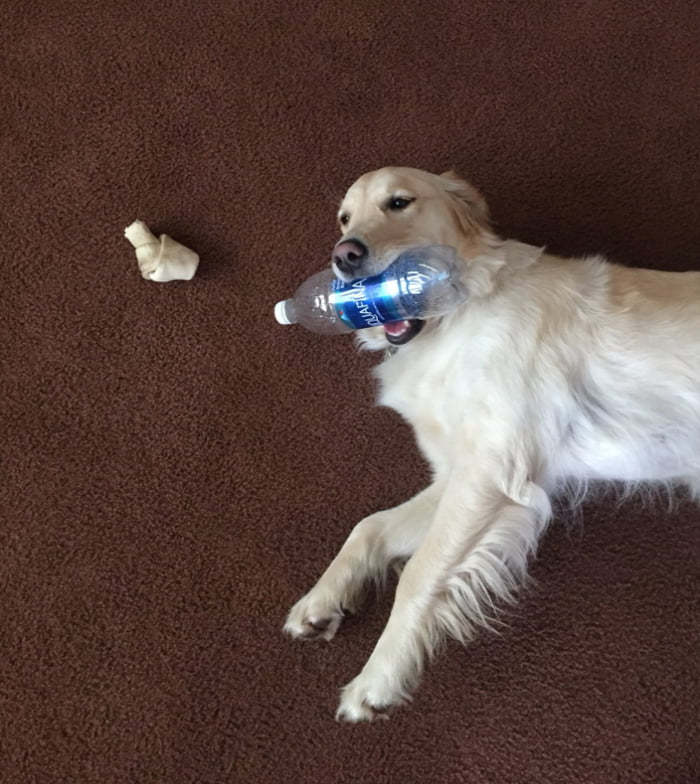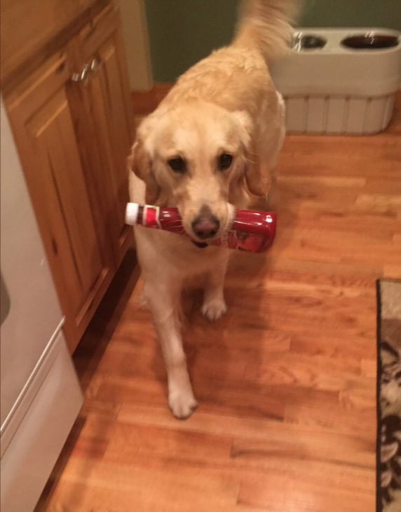 ▼Stella會叼起各種各樣的物品,有時候是水瓶,有時候是襪子,甚至還會叼起電視遙控器。