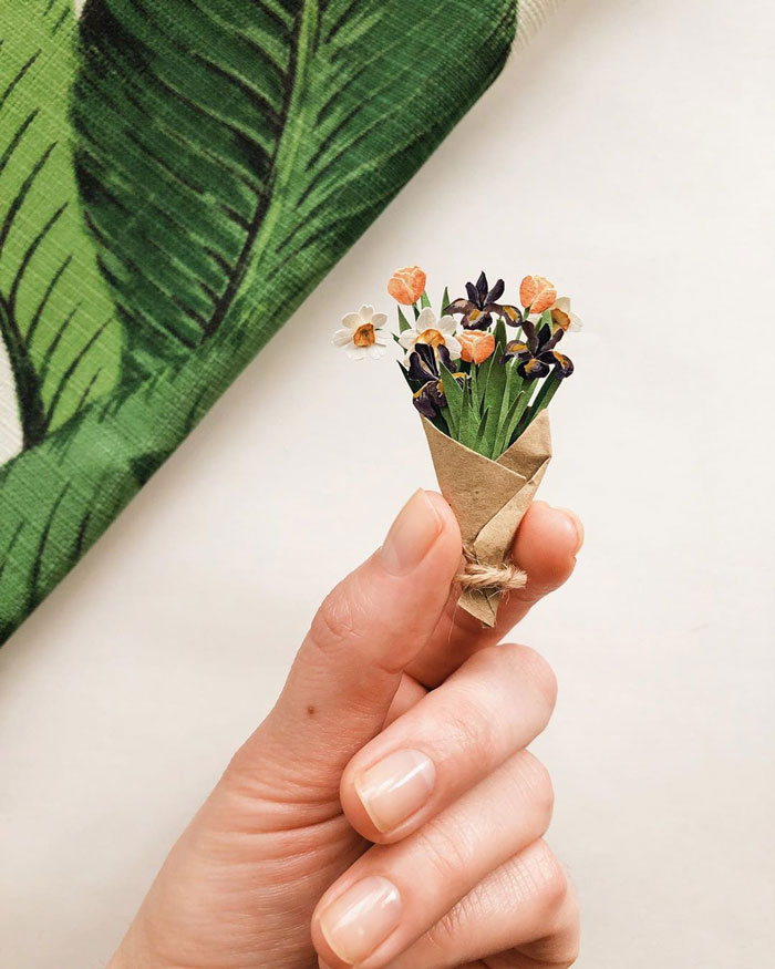 比真花還夢幻!藝術家「剪紙迷你花束」 柔軟花瓣好想收藏一輩子❤