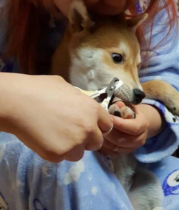 ▼飼主才緩緩的要剪下指甲時,柴柴的表情越來越浮誇,眼睛瞪到像要掉出來似的,張開的嘴巴都可以塞進一顆球了,但是主人當然不會因為滿點的演技而不剪指甲啦~