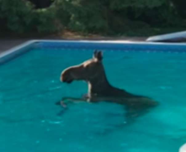 駝鹿闖進「民宅後院」游泳 爽玩3個半小時:到人類家裡玩水囉~