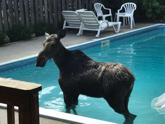 ▼駝鹿佔領Koch家的游泳池: