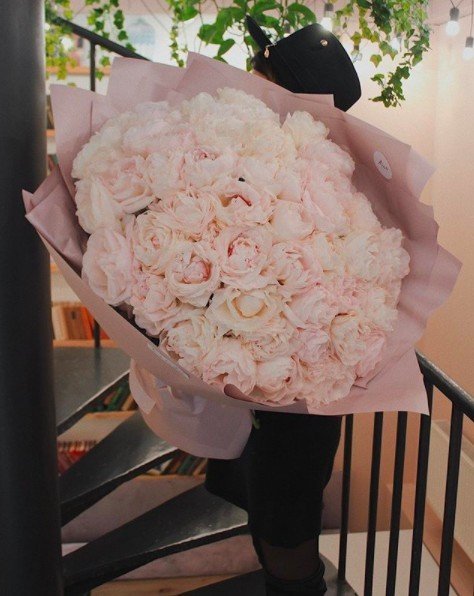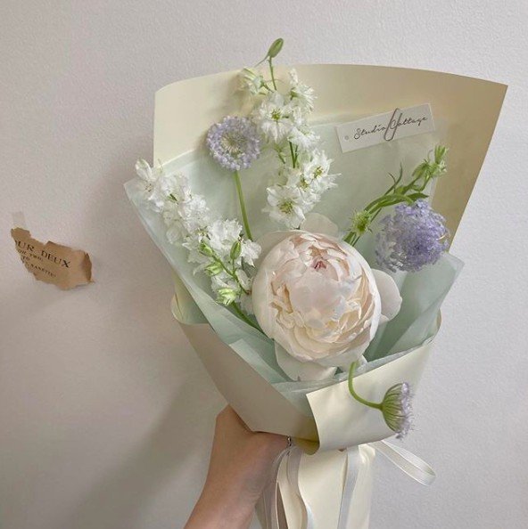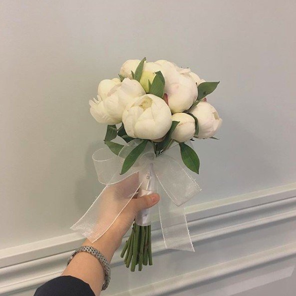 ▼一大束波波芍藥花看起來超療癒,很多韓國女生會用這種花束來當婚禮花球,再加上一點綠葉點綴,看起來很高貴。