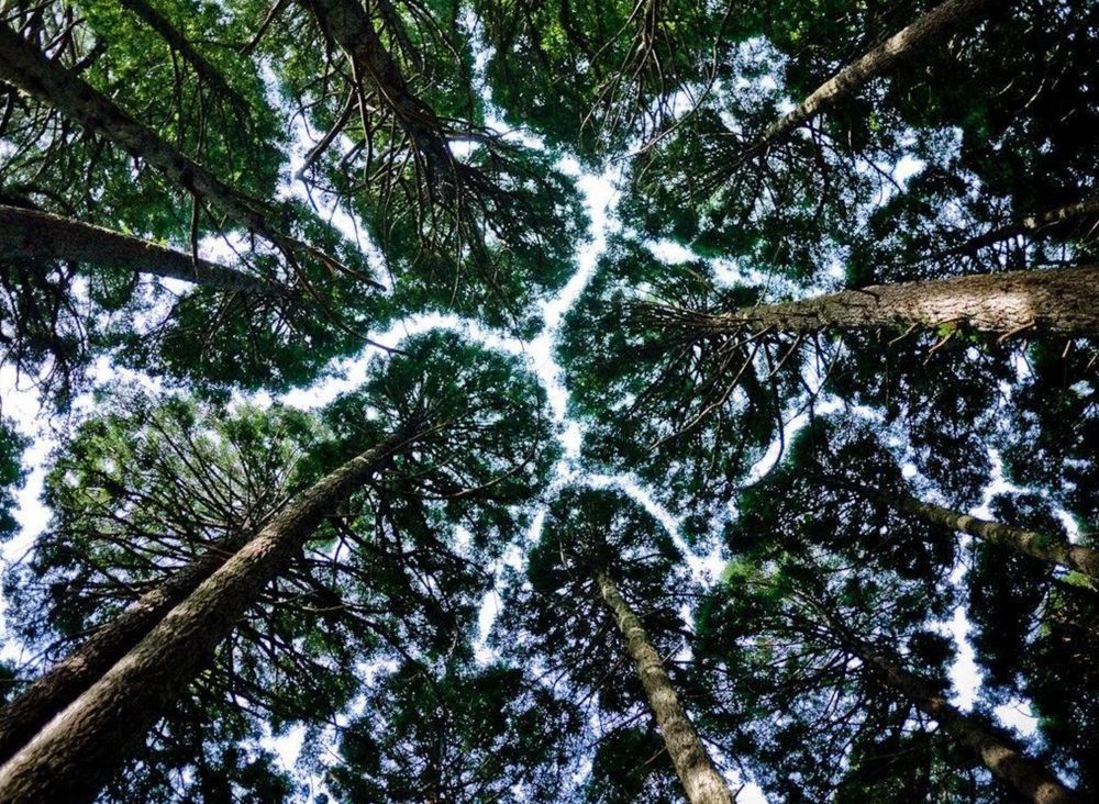▼9.森林相鄰樹木的枝葉互不接觸,這是「樹冠羞避」現象。