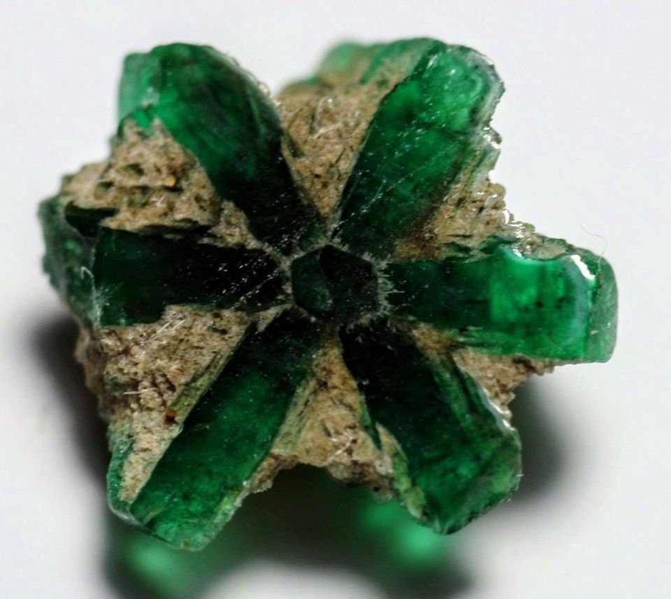 ▼2.這是達碧茲祖母綠,石體橫切面有六角形的條紋從中央向外輻射。