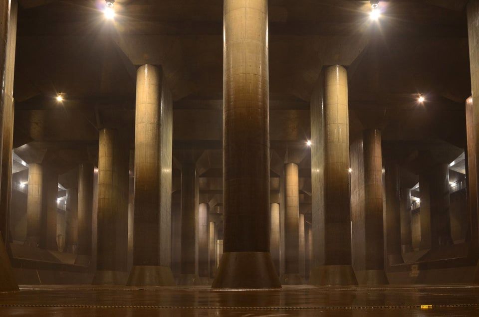 ▼4.東京琦玉縣的地下排水系統,由五十幾根巨大柱子組成。