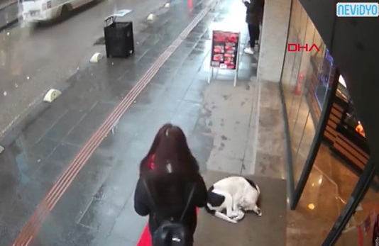 2020年06月18日暖心的故事每天都在發生!在土耳其的宗古爾達克(Zonguldak),一隻浪浪蜷縮在一間咖啡廳門口。當時的氣溫不到10度,還下著綿綿細雨,狗狗躲在屋簷下瑟瑟發抖,看起來很可憐。一名女子走出咖啡廳後,一下子就被這一幕吸引了。