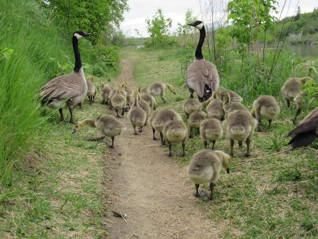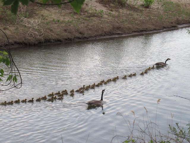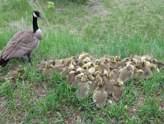 ▼Digout覺得很驚訝,這隻雁媽媽竟然有16個小孩!從那之後他每天都會去觀察這隻加拿大雁,沒想到跟在雁媽媽身後的小雁越來越多,從16隻變成25隻,後來成了30隻,最後竟然達到了47隻。