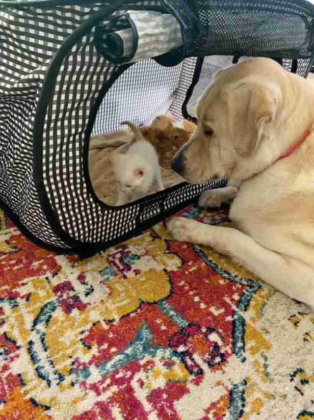 2020年06月20日這隻狗狗是天生的媽媽~美國加州女子Kendal Benken待在家期間想要當中途家庭,照顧那些需要幫助的貓咪、狗狗。她從動物收容所接回3隻小奶貓,沒想到家中的拉拉Truvy馬上進入了媽媽的角色,把小奶貓當成了自己的小孩。