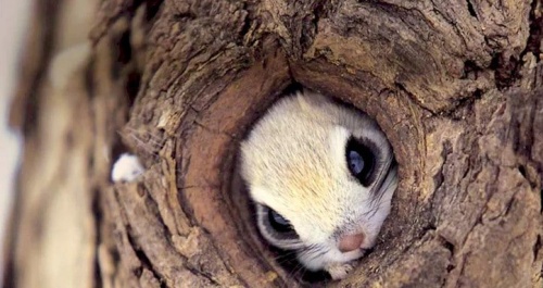 ▼雪地小飛鼠能在空中滑翔,還能用尾巴控制方向。不過牠們更喜歡在樹間跳躍,當牠們從樹洞裡探出頭,小心翼翼看著你時,心都要被融化了。