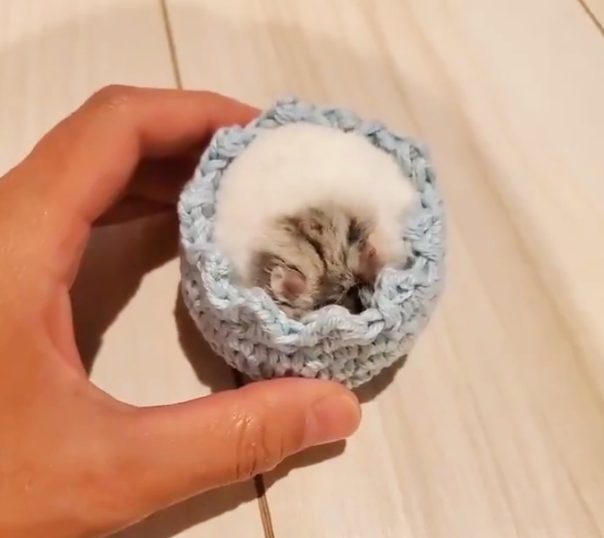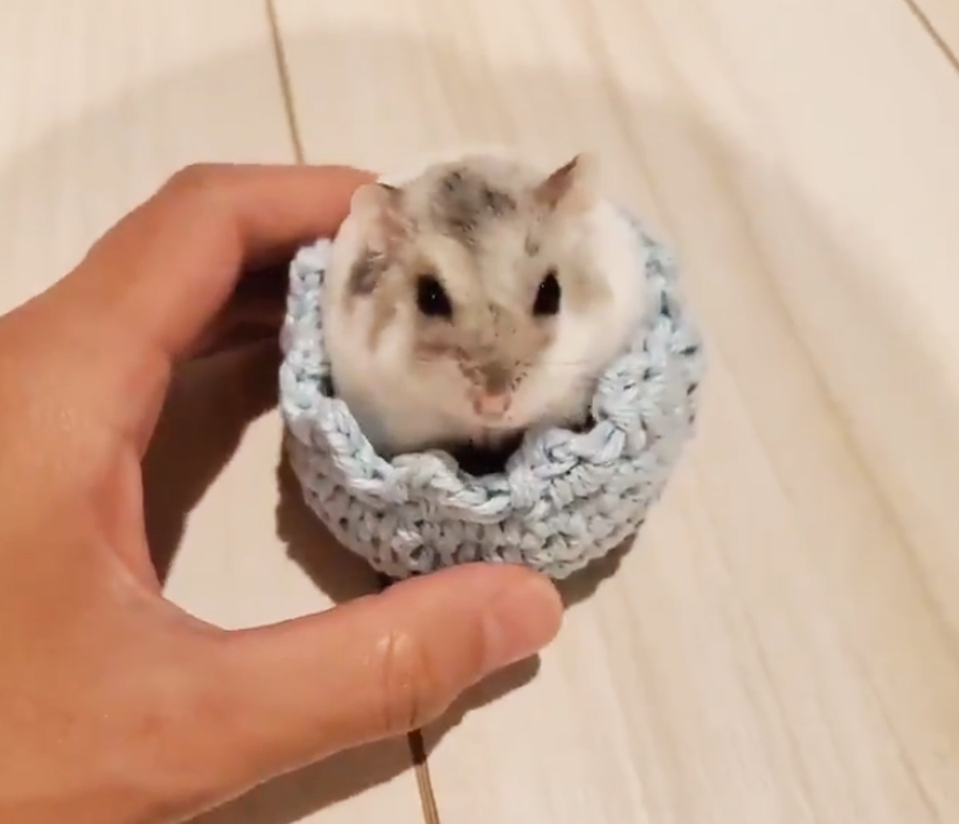 2020年06月21日很多倉鼠都喜歡待在狹窄的空間,大概因為這些地方讓牠們有安全感吧。日本推主@maruro989養了3隻可愛的小倉鼠,她平時會編織一些針織小物給小倉鼠們使用。最近她編織了一個針織籃子,小倉鼠看到後竟然鑽了進去,看起來超可愛~