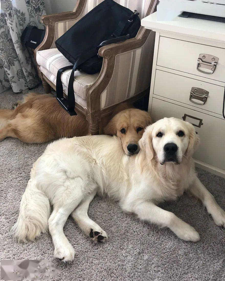 這位飼主家裡有3隻阿金,真是太幸福了。狗狗們都相處得很融洽,互相當枕頭的小習慣也很可愛啊~