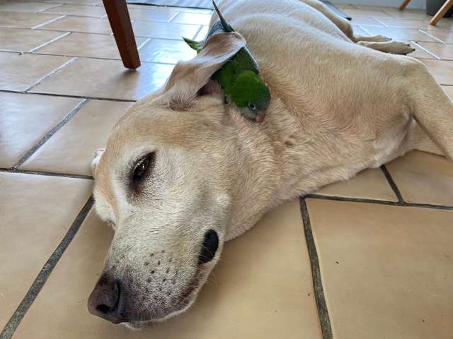 Hope已經是這個家的一員,Hiro把牠當成妹妹,時刻不忘照顧牠。狗狗和小鸚鵡的感情會越來越好,以後牠們會互相陪伴,生活一定很幸福~