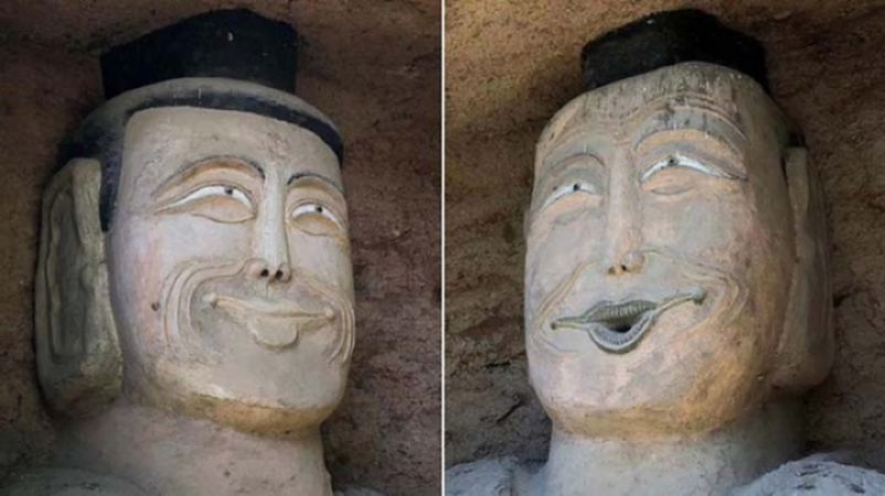 2020年06月24日大陸甘肅省西和縣法鏡寺石窟的佛像,最近被網友發現重整修過後的模樣,臉上表情相當古怪滑稽,不太像是應存在佛像臉上的表情,引起網友們的譏諷,認為修復工匠的技術有待加強,掀起網路熱議。但是當地石堡鎮文化站表示,其實佛像經過修繕後,並沒有太大的差別,這尊佛像本名為「寒山笑世佛」,所以臉上的表情本就是祂的特色。