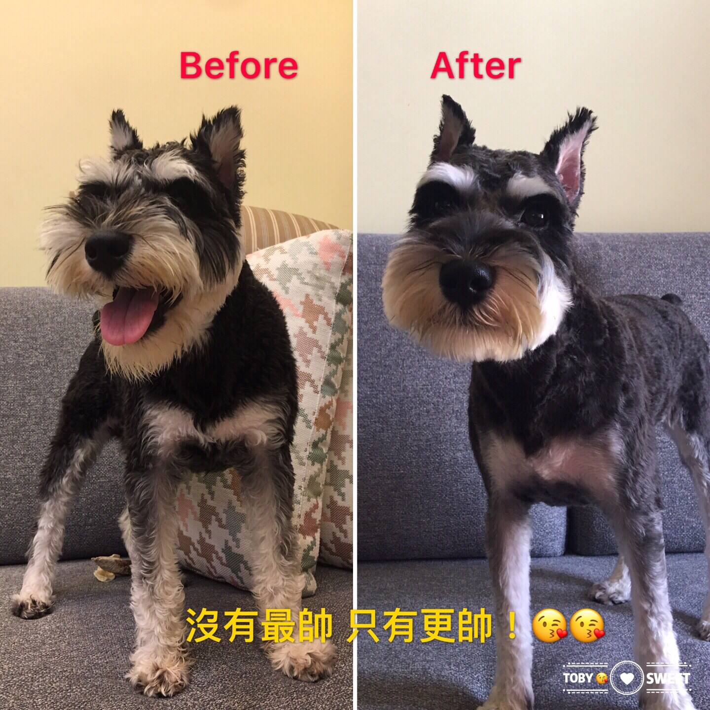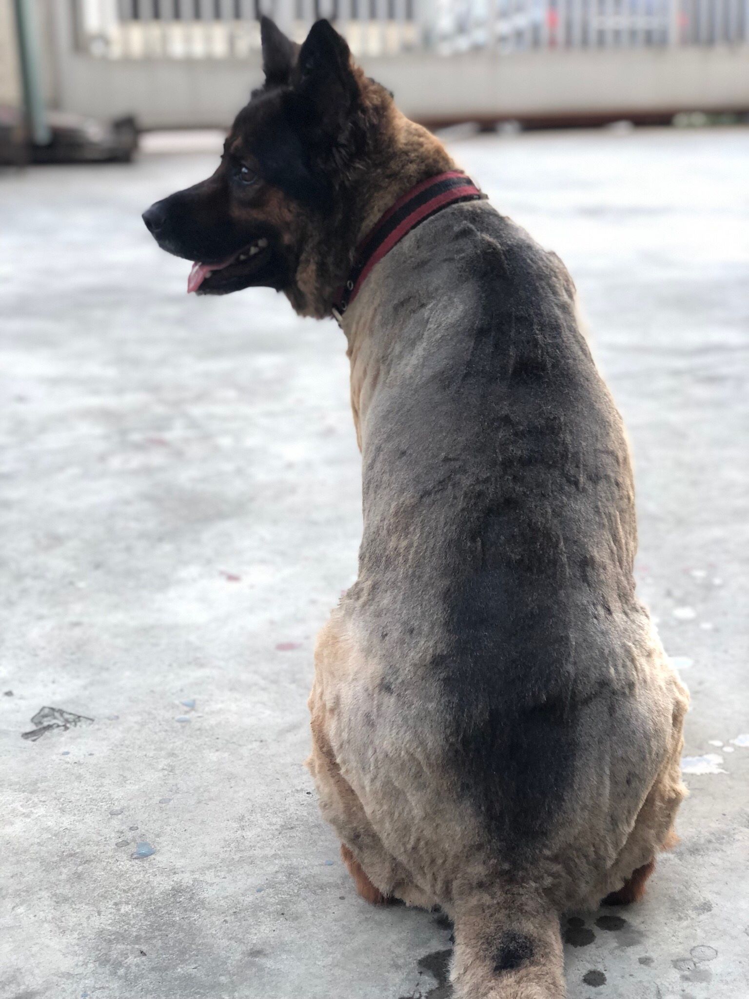 ▼狗狗剃毛後光溜溜,但還是超帥。