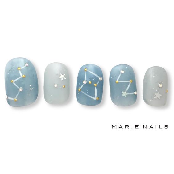 ▼粉藍色的指甲配上簡約的星座圖案,低調又夢幻,將星空元素完美展現出來。如果你喜歡Tiffany Blue,一定要試試這一款~
