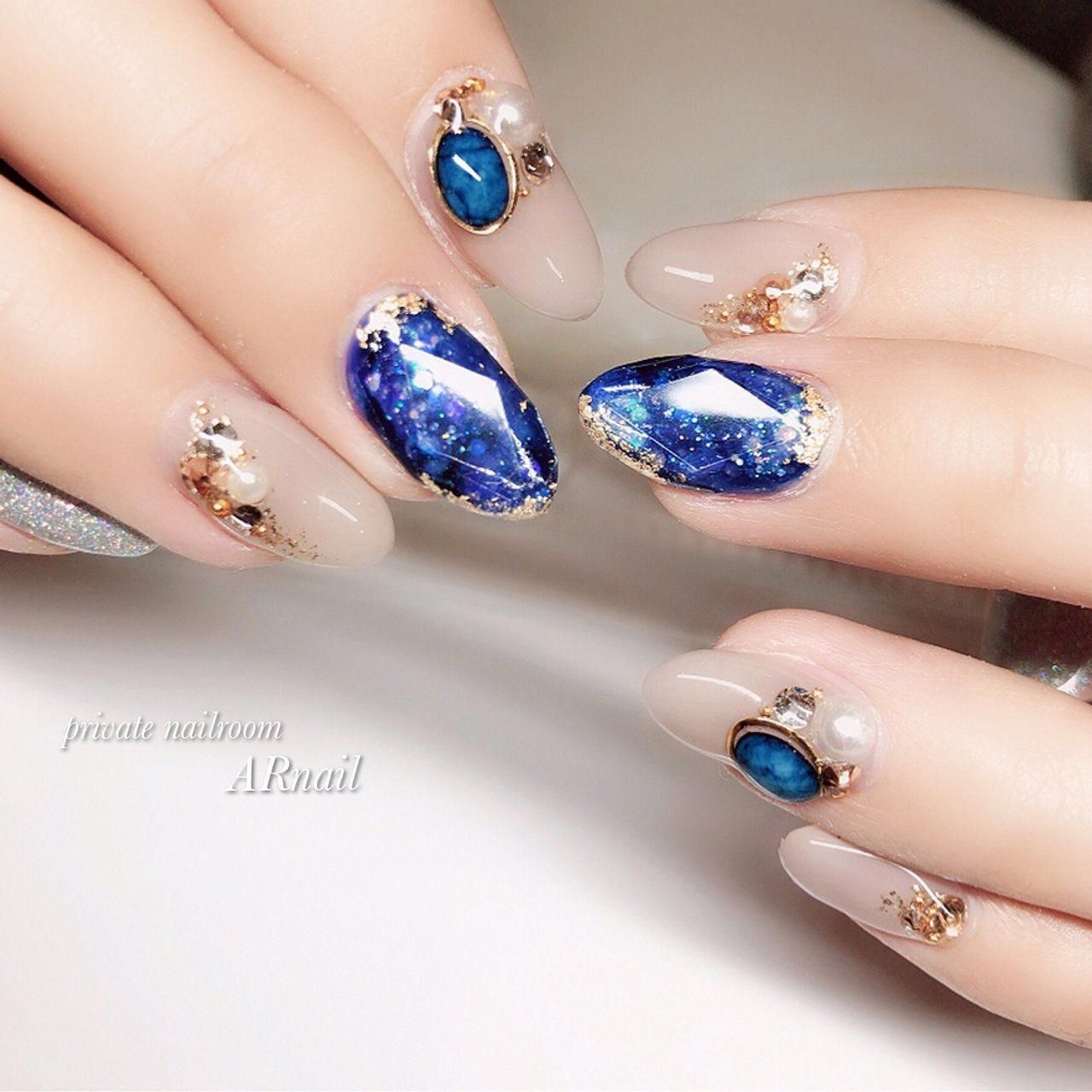 ▼漸變的星空美甲非常漂亮,由透明延伸到深藍色與深紫色,層次感滿滿,搭配閃片和設計過的星座圖案閃石,更加美麗。