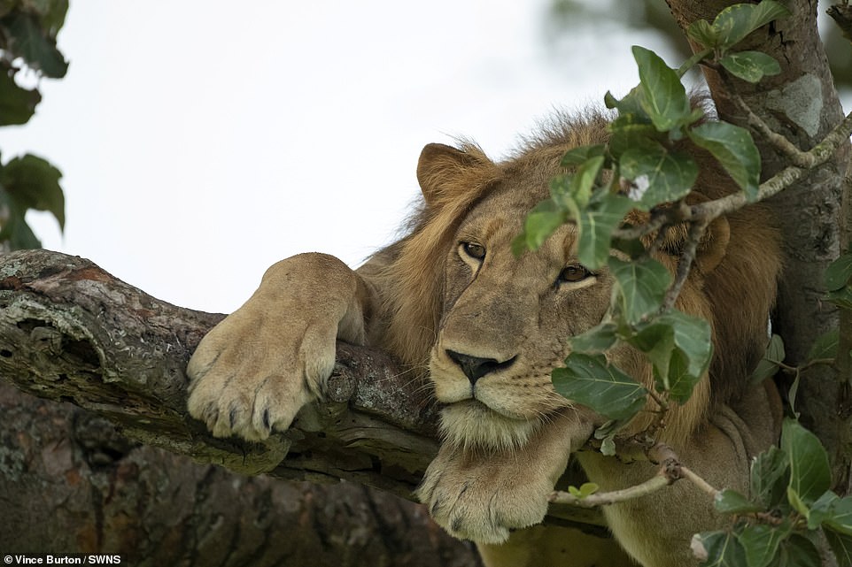 ▼Vince 也被這罕見的畫面所感動了,他表示「雄獅的爬樹能力比不上其他的大型貓科動物,不過很顯然伊麗莎白女王國家公園的獅子已經完全掌握了爬樹的能力。」
