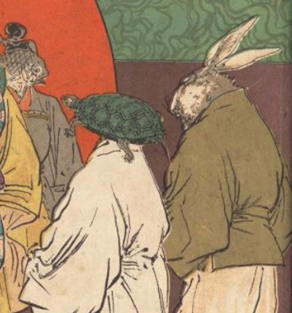 明治くらいまでこういう擬人化よくみかけるのだけど、ウサギはともかくカメもっとどうにかならんかったんかい。 pic.twitter.com/isNmzfPYvV