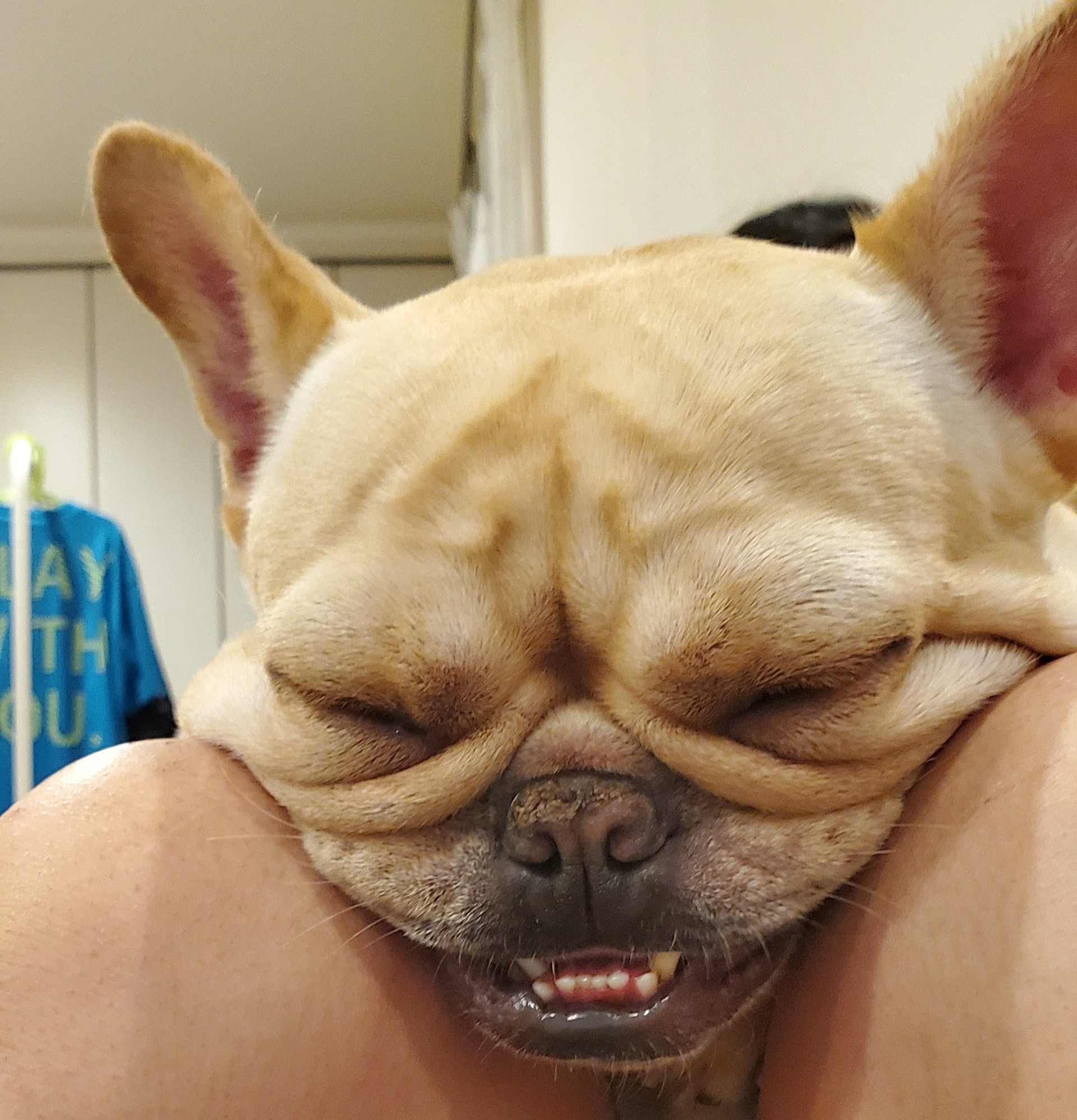 ▼其他網友看到後紛紛po出自家法鬥犬的搞笑醜照:這到底是睜著眼睛還是閉著眼睛?