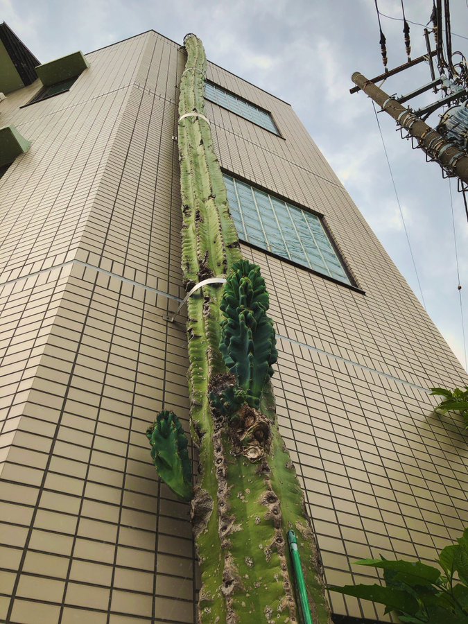 2020年06月29日植物的生長真是沒有極限~最近一位日本網友在推特上po出了一組照片,只見一棟3層建築的外牆上有一根很特別的「綠色電線桿」。他走近才發現那不是電線桿,而是一棵大到不可思議的仙人掌!