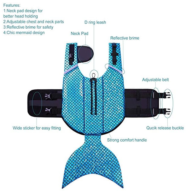 ▼這款救生衣顏色多樣,而且閃閃發光,表面設計成了魚鱗的模樣,後方還有魚尾,狗狗套在身上秒變美人魚。