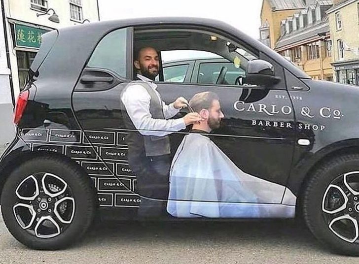 ▼10.Carlo & Co:理髮店的廣告,坐進車中馬上進入工作狀態。
