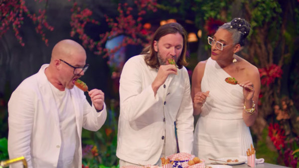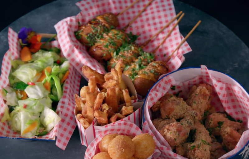 ▼蒂芬妮桌上放著台灣人都很熟悉的紅色「大同電鍋」,她所決定製作的菜色除了富含濃濃的台式風格外,也結合歐美的風格,菜單包含有起司花生醬麻糬、甘梅薯條、鹹酥雞和豬血糕美式熱狗。評審雖一開始抱持著懷疑,但是試著吃過蒂芬妮的作品後,給出了相當正面的評價,直呼這些真是「療癒美食!」