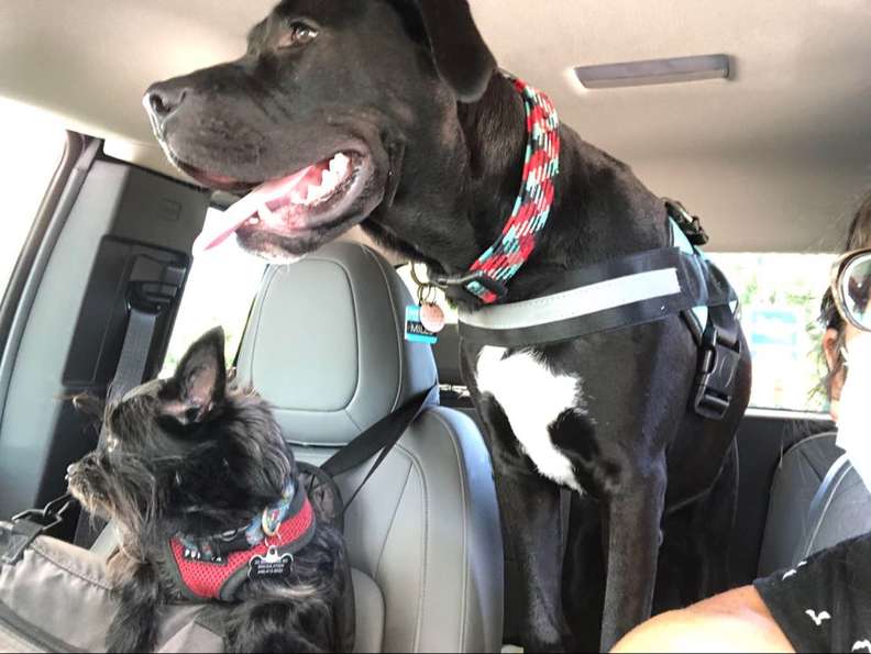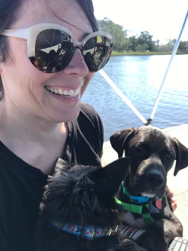 ▼Magen家的狗狗分別叫Miles和Stanley。那隻海豚似乎被狗狗們吸引,跟著小船開心游了好一會兒。牠不時探出頭吸引狗狗們的注意,完全忽略了旁邊的Magen。Magen並不在意,她知道這是非常珍貴的時刻。