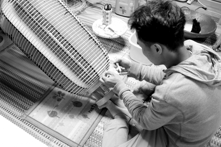 ▼這款帽子的主體部分是用半透明、可伸縮的材質製作的,拉起來會變得很高,像燈籠也像高帽。為保留燈籠的概念,帽子的頭頂部分特別挖了一個大洞,戴起來不會覺得悶,透氣效果超級好。