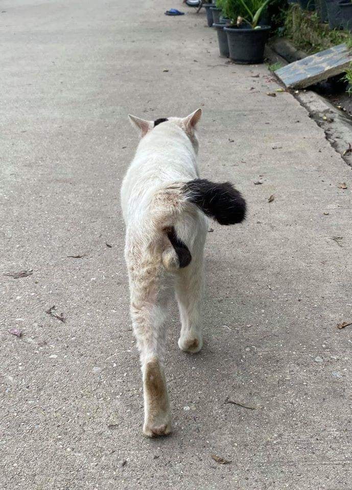 邊走邊晃!短尾喵後頭長「黑白鈴鐺」 網友笑:一份皮蛋豆腐