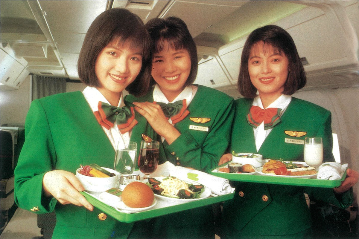 大墊肩的年代!長榮初代空姐「無修美照」曝光 老粉憶當年:飛機餐很神!