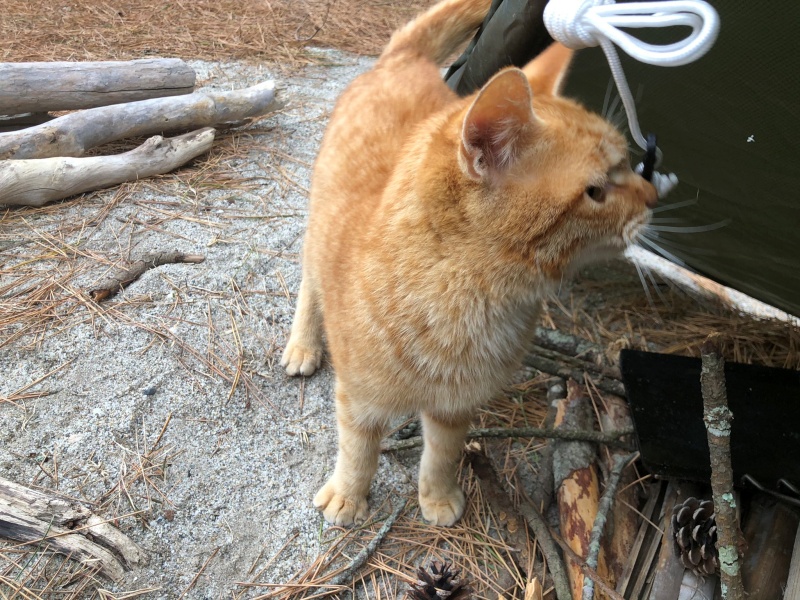▼這名推主起先看到在營地附近晃來晃去的貓咪也沒放在心上。