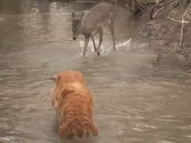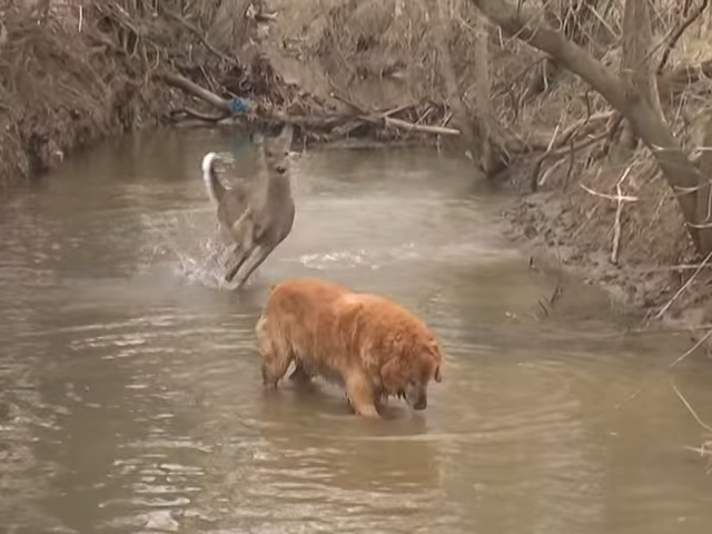 有新朋友了! 阿金河邊戲水「邂逅森林小鹿」 雀躍小鹿「興奮嗨跳」停不下來:快一起來跳舞~