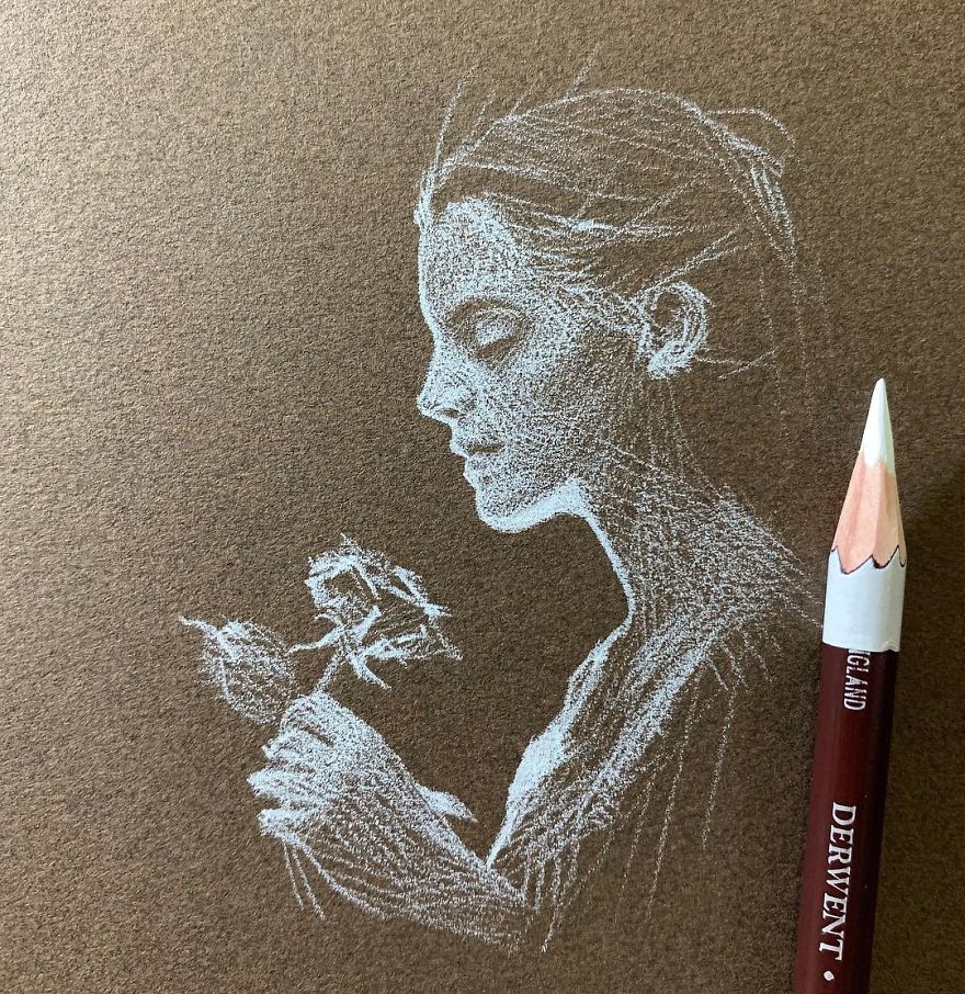 ▼Kay Lee曾在藝術院校學習,她對很多藝術創作形式都非常感興趣。但她選擇在黑色的紙張上畫鉛筆畫,卻是因為這種獨特的質感。