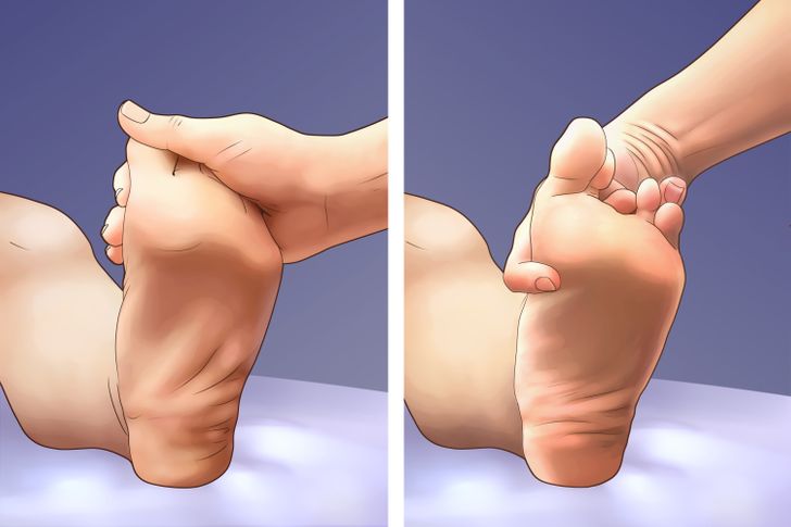 ▼1.足部按摩:一手握住腳跟,另一隻手握住腳趾和前腳掌,來回活動腳趾,慢慢用力。足部按摩能夠緩解疲憊,促進代謝循環,對心理健康也有好處。