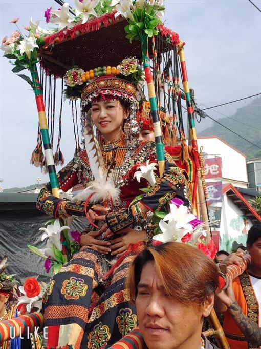 排灣頭目女兒出嫁太美!傳統服飾「坐扛轎超霸氣」 大20歲老公獻禮全村嗨翻