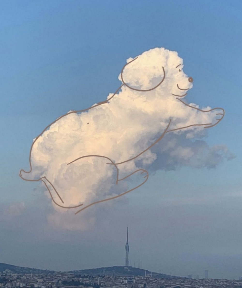 天空中的白雲並不罕見,沒想到乘著想像力的翅膀,白雲竟然變成了這麼可愛的畫作。大家也可以用同樣的方式創作,放飛想像,讓生活充滿樂趣~