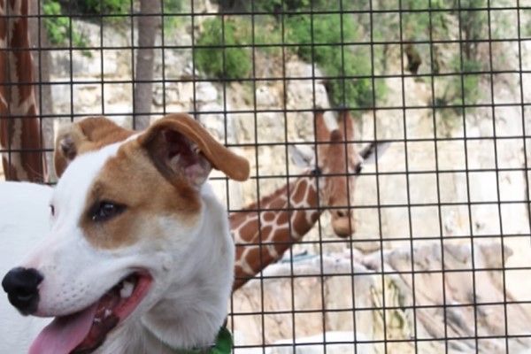 ▼後來狗狗還去看了鬣狗、長臂猿、長頸鹿等動物,全程都表現得很有活力。