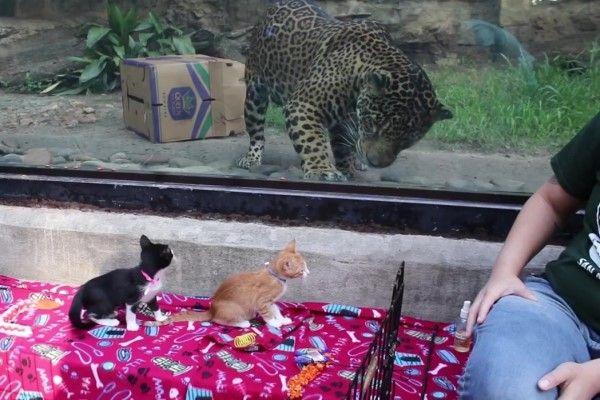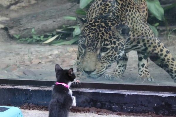2020年07月10日貓咪、狗狗也會逛動物園!最近美國「聖安東尼奧動物園」(San Antonio Zoo)跟收容所合作,讓一對貓咪與兩隻狗狗來逛園區,欣賞多種多樣的動物。第一次看到大型動物的貓咪、狗狗興奮又好奇。特別是小貓跟豹同框時,小貓跟大貓四目相對,看起來格外有趣。