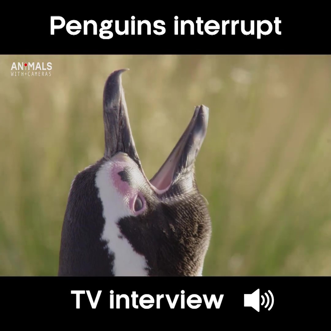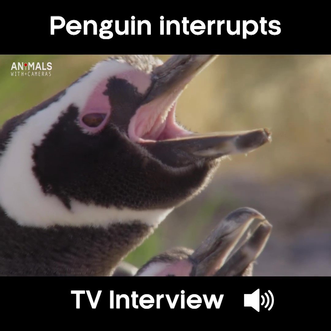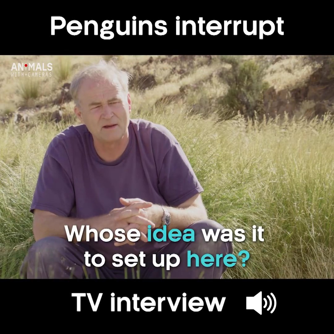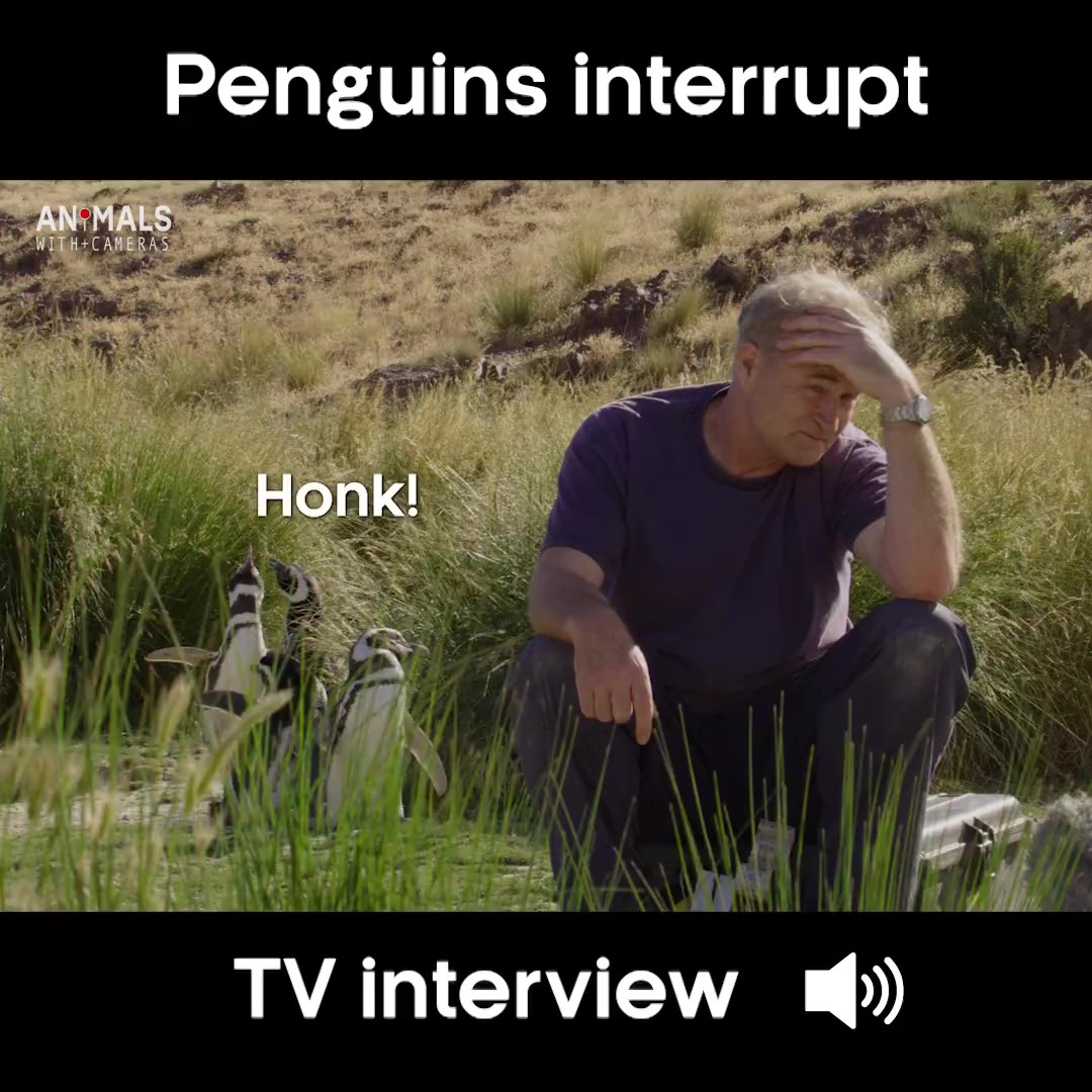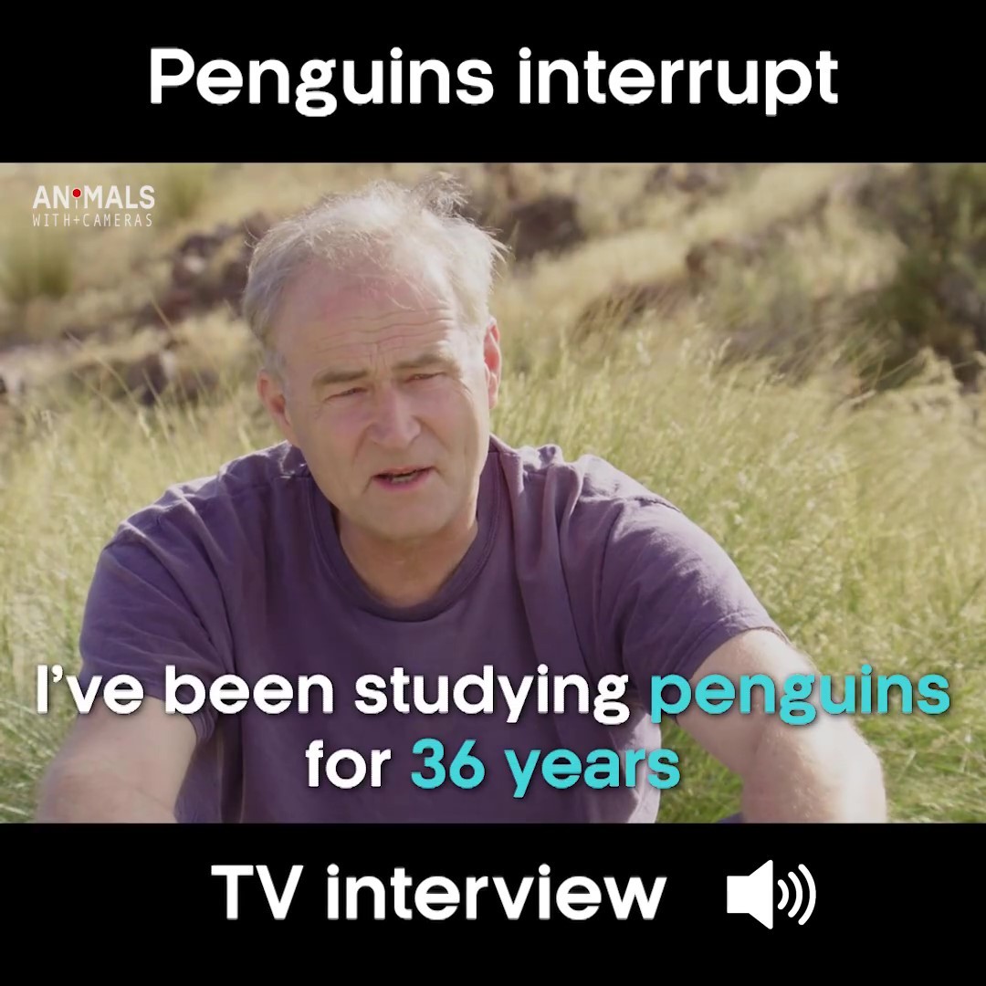 ▼專家在一群企鵝旁邊講述自己的故事:「我研究企鵝36年了…」這一幕本該很溫馨,但旁邊突然傳來「啊啊啊、叭叭叭」的聲音,就像有人在按喇叭。原來是企鵝在搗亂。