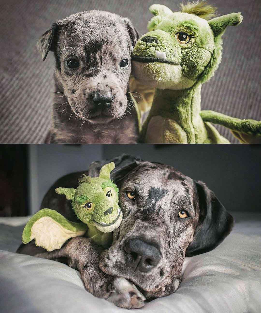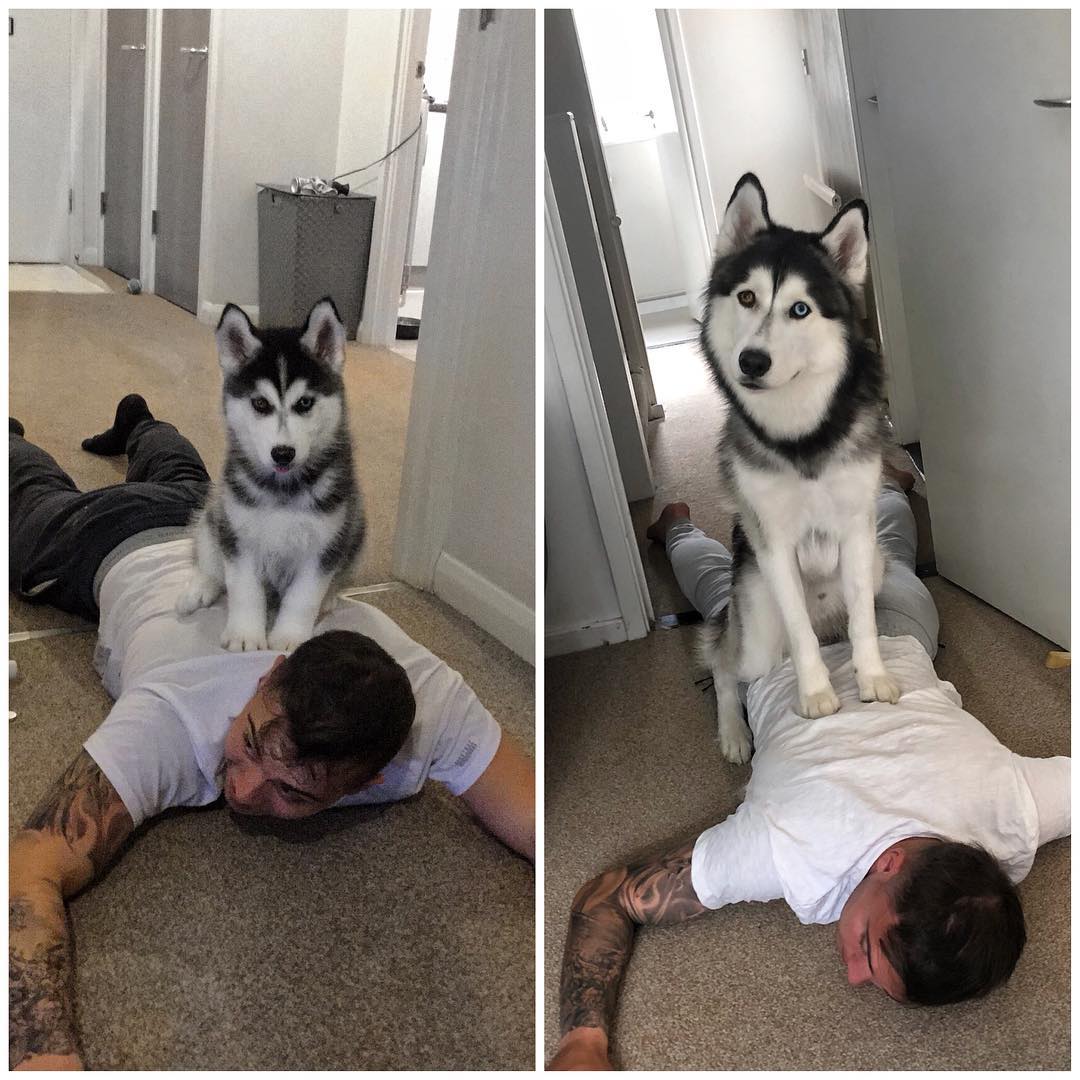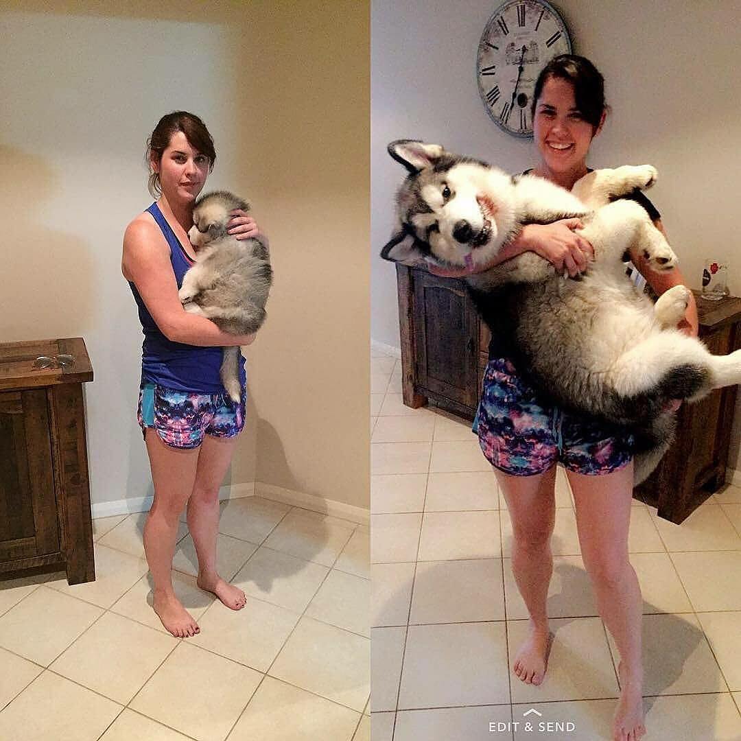 真的長成熊了!31張汪汪「小時候VS長大後」對比圖 變大了習慣還是寶寶❤