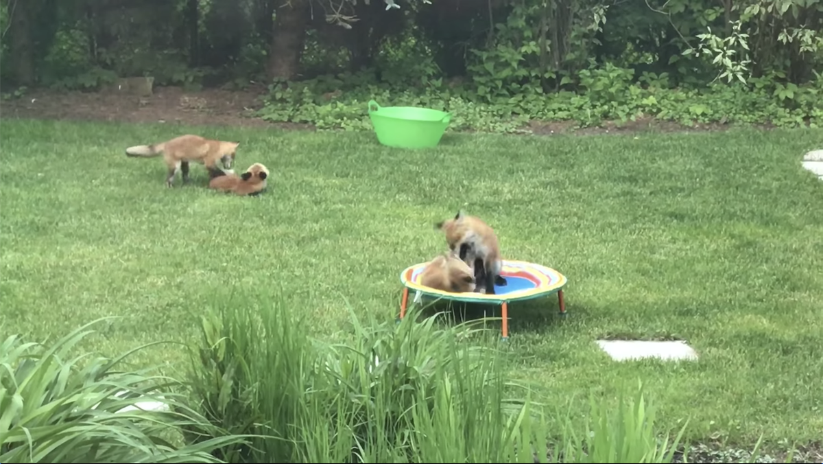 ▼狐狸一天會來拜訪戴維斯家好幾次,還會在草坪上互相咬來咬去、睡午覺,甚至還會跳上後院的跳跳床上嬉戲,互相在草地上追逐奔跑、伸展筋骨,狐狸們感覺非常自在,讓戴維斯一家都覺得看著好棒!