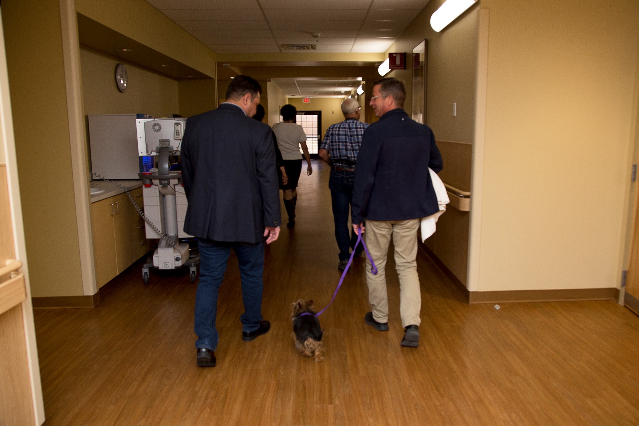 ▼帶Patch去醫院的路上,這隻聰明的狗狗一直很平靜。直到汽車在醫院所在的路上轉彎,牠才漸漸激動起來。Patch似乎知道馬上要跟主人見面,也知道這是他們的最後一次見面,牠不停嗚咽,讓人覺得很不捨。