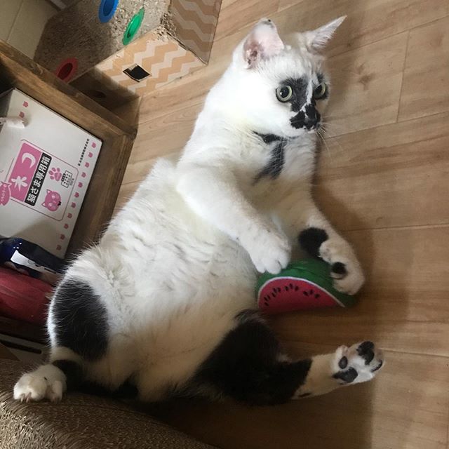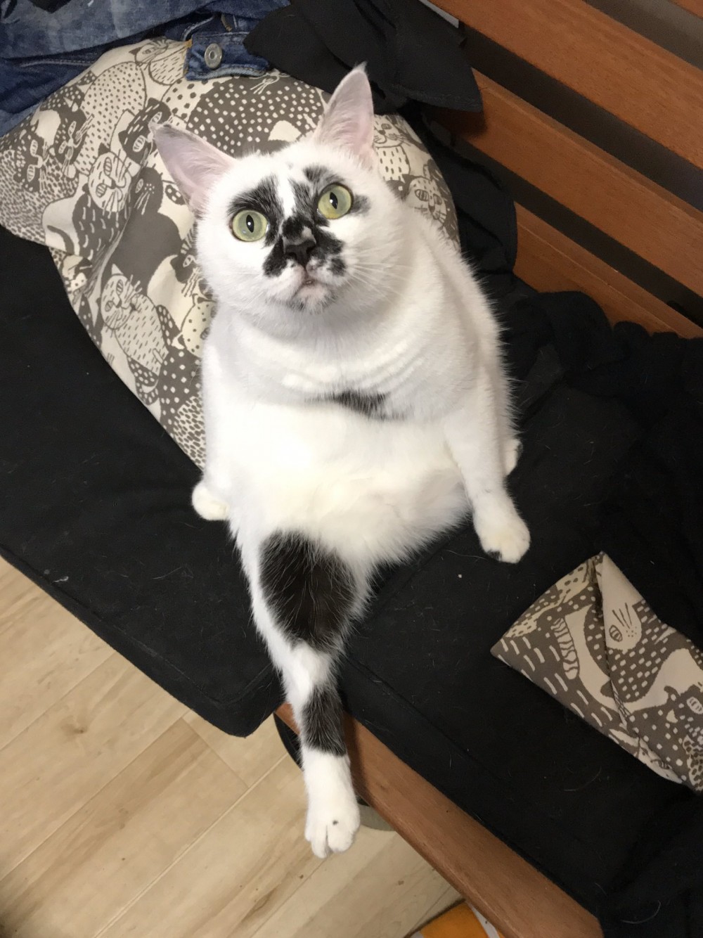 ▼推主經常在網路上分享貓咪的可愛照片,大家都被長相獨特的Michiru吸引,紛紛笑說:「是出生的時候黑墨水不夠了,還是跑去玩墨水洗不掉呢(笑)」、「長得實在太特別了」、「好想幫牠擦擦臉XD」。