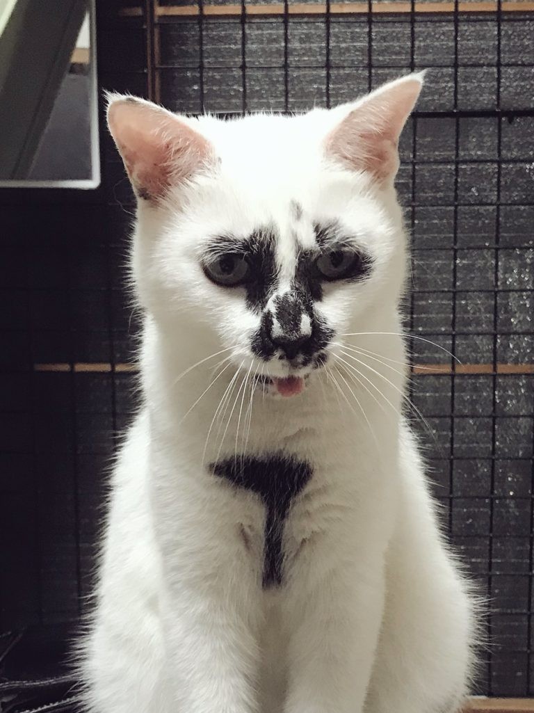 你沒洗臉喔?白貓天生髒髒「墨水臉」 大叔式坐姿「0優雅」網笑噴:注定當諧星的料~